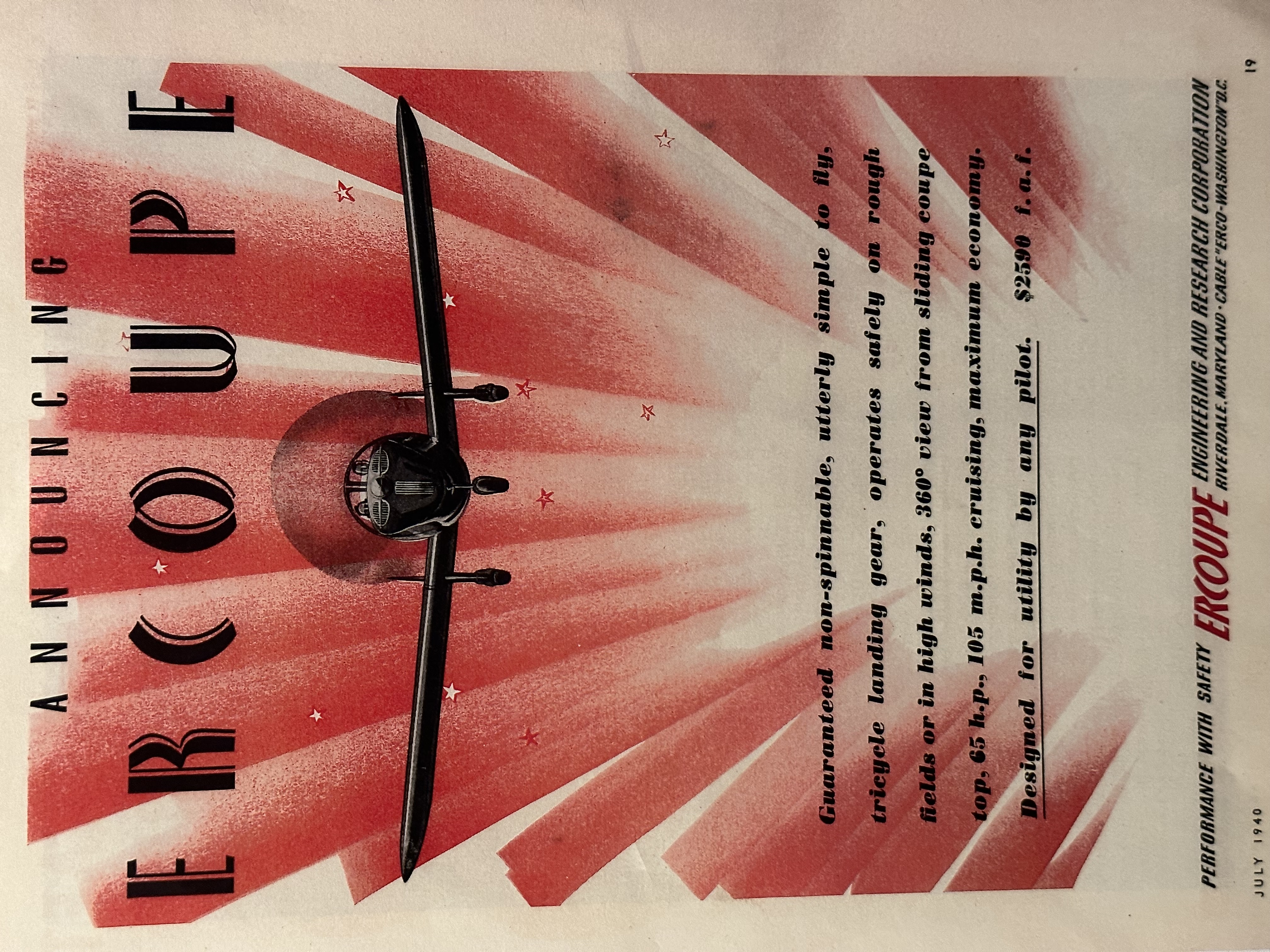 Frequently mistaken as the name of the manufacturer, “Ercoupe” is actually the name of this model of airplane. The original manufacturer was Engineering and Research Corporation – often abbreviated ERCO. The company’s marketing department simply added “upe” to create Ercoupe.
